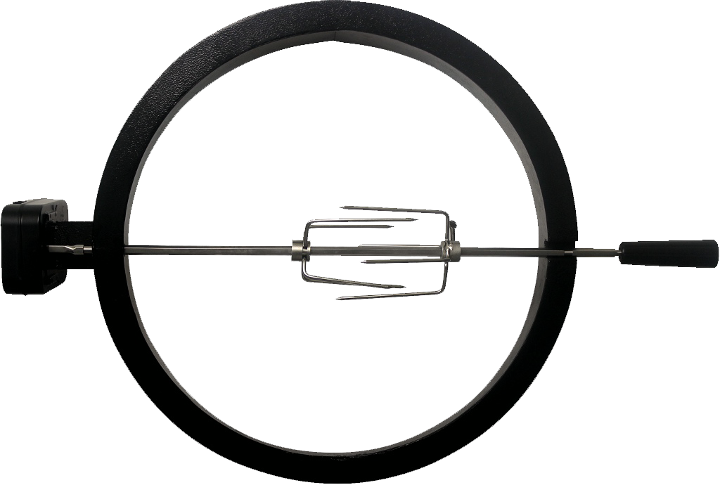 Place your favourite meat on the spit of the rotisserie and let it spin under the lid.